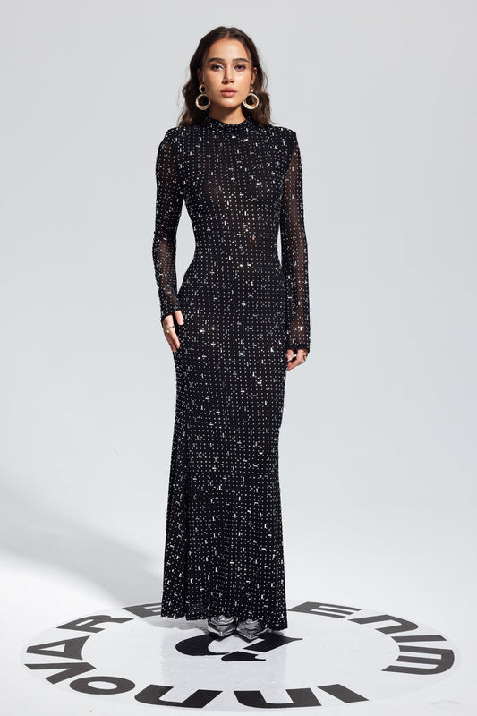 Andie Rhinestone Bodycon Long Sleeves Maxi Dress