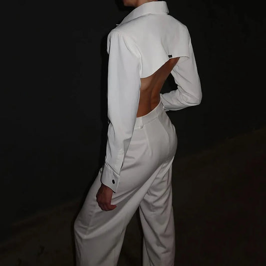 Bonnie Open Back Button Down Blouse Casual Pants Two Piece Set
