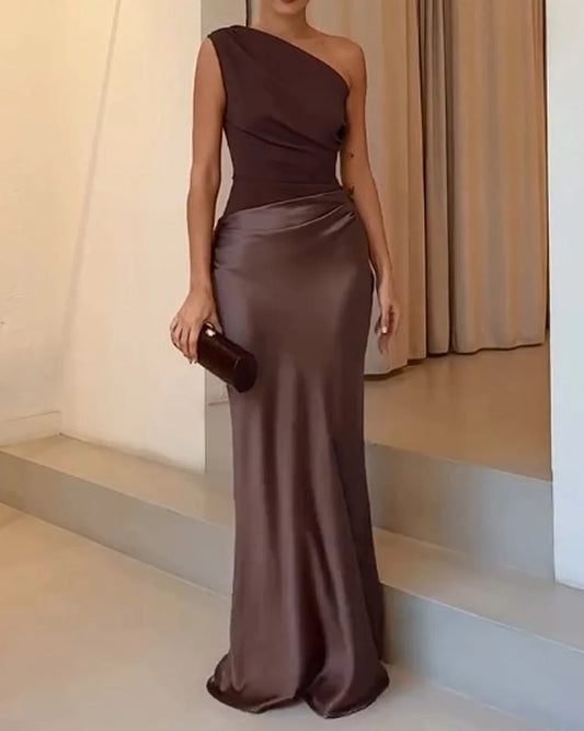 Ivanka Elegant Sweetheart Sheer Ruffle Maxi Dress